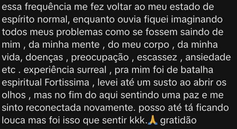 Quando você escuta frequências com esse padrão, seu sistema, suas células e todo o seu corpo respondem - trazendo de volta harmonia natural e perfeita.